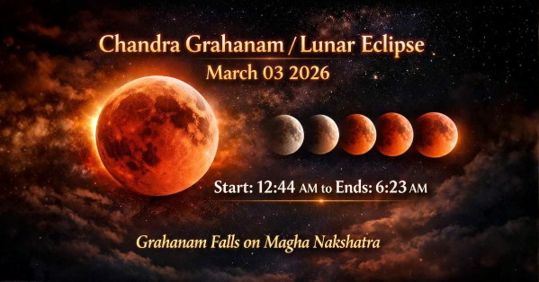 Chandra Grahanam / Lunar Eclipse March 03 2026 Start: 12:44 AM to Ends: 6:23 AM Grahanam Falls o...